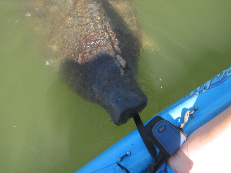 Manatee nibbling on seat strap
