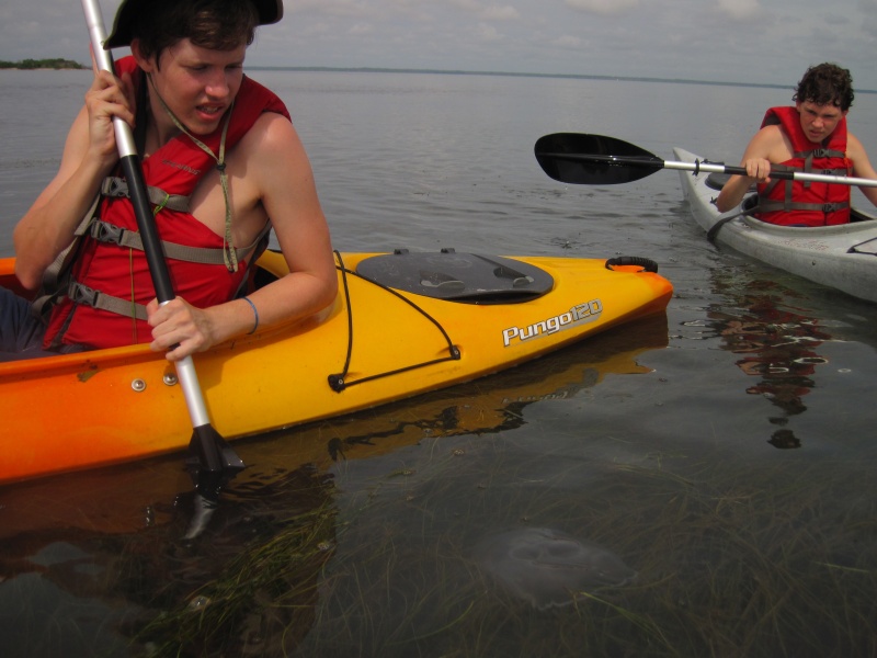 Checking out a Moon Jelley Fish in the flats.