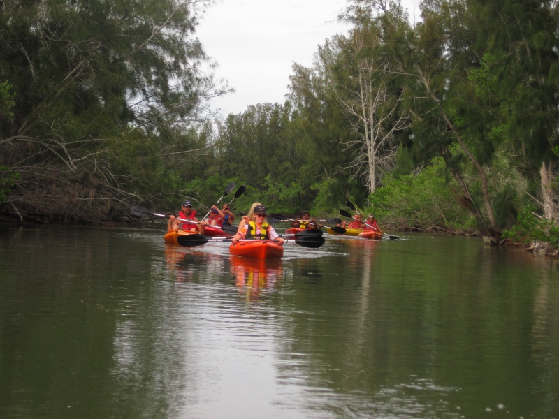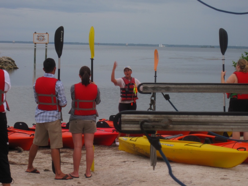 Dee doing what she does best-familiarizing the paddlers with the kayaks and waterway.